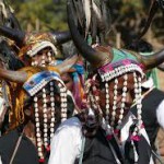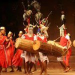 All Gonds and especially Madias, are very fond of dancing. It is the great amusement of the people. Night after night in the eastern tracts in the cool, moon-lit nights of the hot weather ,the rhythmic lilt of a Gondi chorus fills the air, as the villagers dance round a fire in some open space near the hamlet. The favourite dance is a peculiar rippling step forward with the foot dragged, not very graceful when done by a single individual, but looking quite different when done in unison by a great circle of dancers singing a ‘re-la‘, ‘re-la’, chorus to which the step keeps time. In some villages, where the headman is an enthusiast for the pastime, a trained band performs weird and wonderful step dances to the sound of the drum.