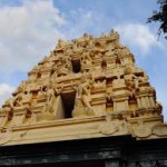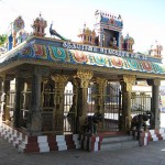 The temple god Sri Subrahmanya known as Kumarakottam is located in West Raja Street near Gangaikondan Mandapam and Sri Sankaramutt in Big Kanchipuram. It is situated in between the temples of Sri Ekambareswara and Sri Kamakshi. In this temple, the sacred Kanda Puranam in praise of Lord Muruga was composed by the saintly scholar Kachiappa Sivachariyar. According to the account of Kachiappa, each day he would write his inspired account of the career of Lord Murugan or Skanda, and in the evening deposit his day’s work in the of Lord Subrahmanya feet at Kumara Kottam. Each night the Lord Himself would modify Kacciappa’s manuscript with His own corrections. So the Kanda Puranam is considered to be the absolutely authoritative account of Lord Murugan’s career bearing the seal of approval of none other than the Lord Himself. According to mythology, Lord Muruga punished Lord Brahma for his ignorance of the meaning of the Pranava mantra, by a hard knock on his vortex with His fist and then imprisoned him. Later, He assumed the Creation duties of Lord Brahma. In this Kumara Kottam Temple, Lord Muruga installed himself in the sanctum in the Creator Brahmasasta form. The Subramanyar here was worshipped by Sage Agasthiar. Though this is a Murugan temple, Lord Shiva as Arunachaleswarar with Abitha Kuchalambal and Sarabeswarar (in a pillar) are also present. The Rahuhala (4:30 PM to 6:00PM) Sarabeswara Pooja during every Sunday is very special here.