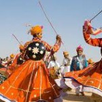 Their instruments are an ordinary Mandal (big drum) and a Thali (brass plate). Hundreds of men and women join and move in a circle with wild shouts and lusty songs to the noisy abandon of the beat of drums. The Bhagoriah is typical of ecstasy and vibrating spectacle. Men waving bows and arrows synchronize their movements and stamping of feet with verve. During the Holi festival in Phalguna (Feburary) the Bhils and the Garasias perform a dance called the Ger.