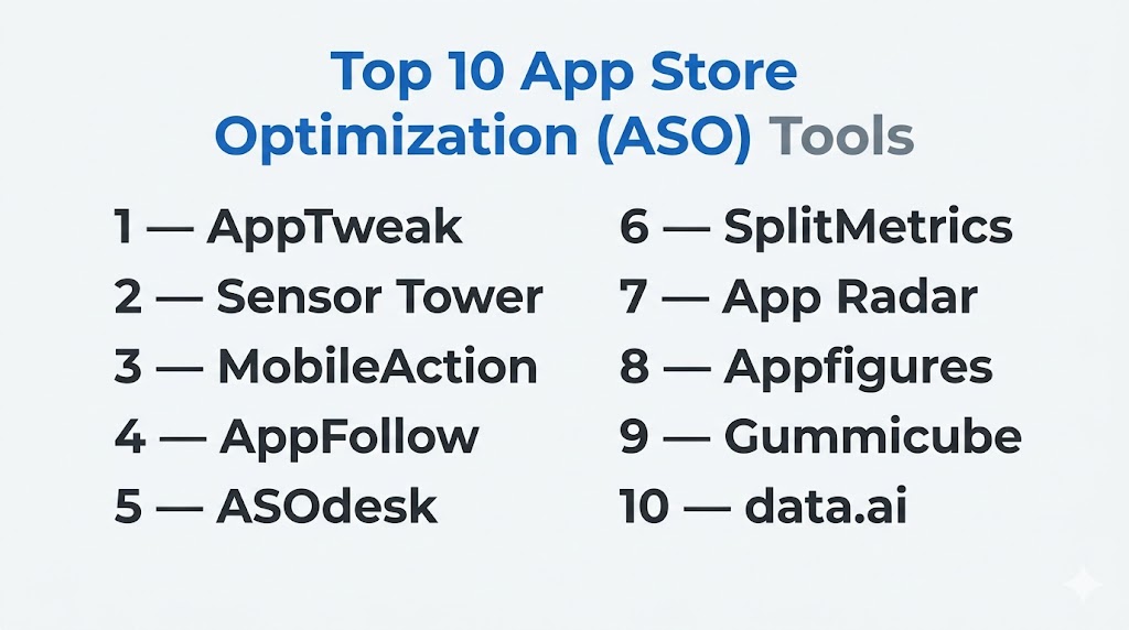 App Store Optimization (ASO) Tools help mobile apps improve visibility in app stores like Apple App Store and Google Play. They support keyword research, ranking analysis, competitor tracking, creative testing, review monitoring, localization, and conversion optimization so more users discover and install apps organically.