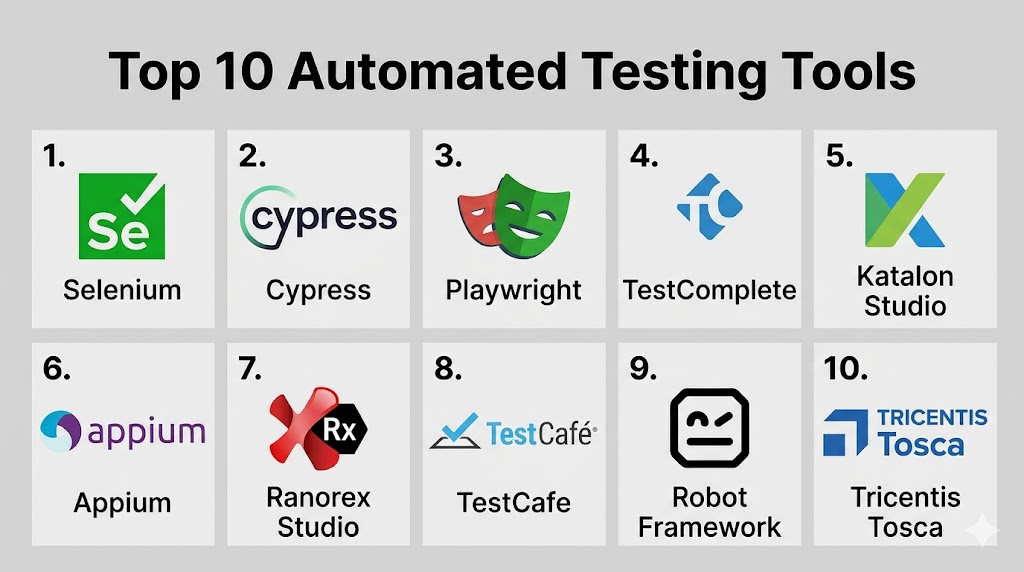 Automated Testing Tools are software solutions designed to execute test cases automatically, validate application behavior, and ensure software quality without manual intervention. Instead of relying on repetitive manual testing, these tools help teams run faster, more accurate, and scalable tests across web, mobile, APIs, and enterprise applications.