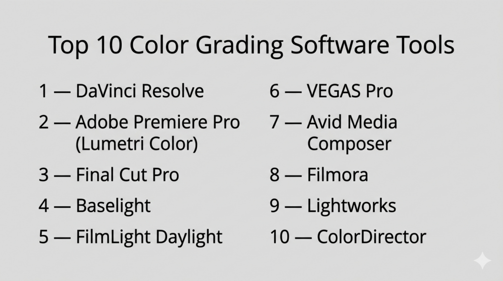Top 10 Color Grading Software Tools