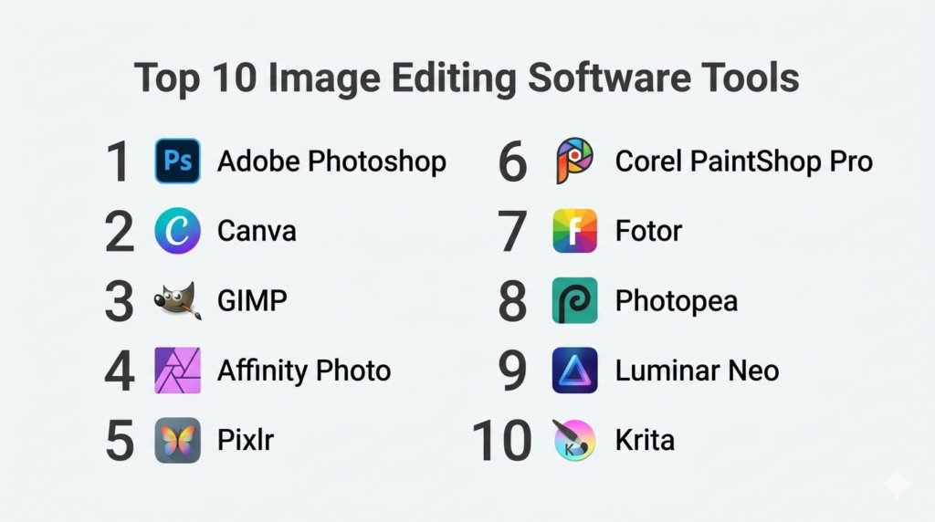 Top 10 Image Editing Software: Features, Pros, Cons & Comparison