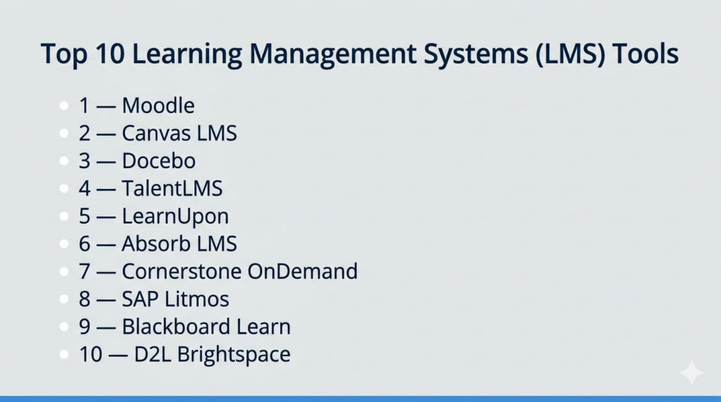 Learning Management Systems have evolved from simple course portals into strategic platforms for workforce development, onboarding, compliance, and continuous learning. The best solution depends on whether you need open-source flexibility, enterprise AI, academic workflows, or fast SMB deployment. Shortlist two or three tools, run a pilot, validate integrations and security needs, and choose the platform your learners and admins will consistently use.