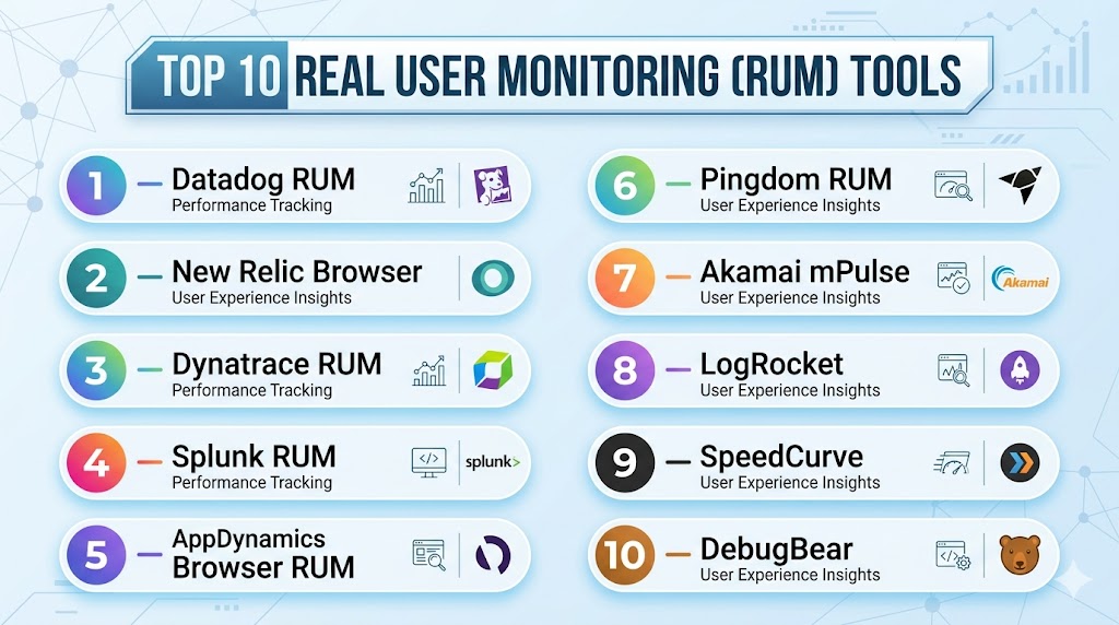 Top 10 Real User Monitoring (RUM) Tools: Features, Pros, Cons & Comparison