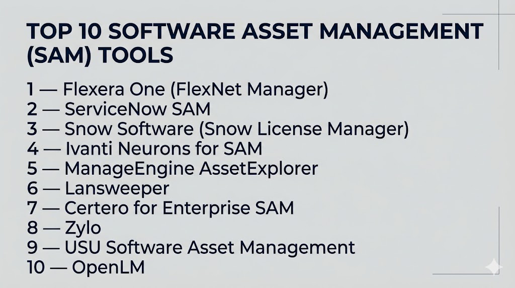 Software Asset Management (SAM) tools help organizations track, manage, optimize, and govern software usage across their infrastructure. In simple terms, SAM ensures that companies know what software they own, where itโs installed, how itโs used, and whether it complies with licensing agreements.