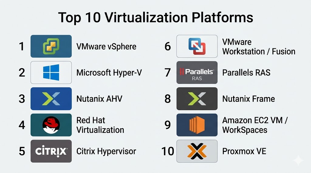 Top 10 Virtualization Platforms: Features, Pros, Cons & Comparison