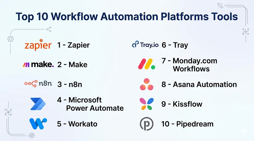 Top 10 Workflow Automation Platforms: Features, Pros, Cons & Comparison