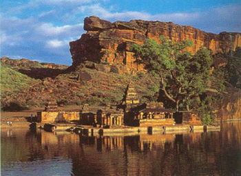 It is one of the specially fascinating places in the South . Pattadakal and Aihole nearby are also worth seeing. Unspoiled by tourism because of bad roads and poor accommodation one should take a train to Sholapur then change to a local train via Bijapur. Hire a tonga from the station into the city to enjoy the beautiful tree-lined roads.This is a small town of 20,000 people. In the 6th-8th centuries it was the capital of the Chalukya dynasty and was called Vadapi. Along with Aihole this is the place where the origins of south Indian architecture can be seen. A large man-made lake has rocky mountains on three sides. The town is spread over plains on the fourth side. There is fort on the mountains. Ancient stone temples blend with the north and southern mountains they are built on. Bhutanath Temple on the other side of the lake looks it is floating on the water. The evening view is unforgettable. It looks like a painting of India in the Middle Ages. |