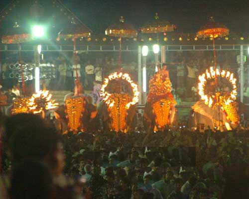 Thirunakkara Mahadevar Shiva Temple Kottayam is one of the oldest shrines in the city that was built about 5 centuries ago. It was constructed by a South Indian ruler named Thekkumkoor Maharajah.The temple dedicated to Lord Siva is famous for the grandeur of its traditional architecture. Thirunakkara Mahadevar Shiva Temple claims a special mention among the numerous tourist attractions of Kottayam, due to its rich architecture. The interior walls of this holy shrine are decorated with striking, colorful and enticing murals. This kind of elegant architecture is a typical feature of Kerala. The sanctum sanctorum or the innermost shrine of Thirunakkara Mahadevar Shiva Temple is adorned with impressive images of epic characters from the Hindu mythology. These beautiful scenes draw the attention of tourists. Several cultural events are organized in Koothambalam, a building located within the premises of the Shiva temple. The Siva temple at Thirunakkara is located in the heart of Kottayam town at a distance of 1.5km on the Ernakulam- Thiruvananthapuram railway line. The 500year old temple was constructed by Thekkumkoor Maharaja in the Kerala architectural style. The walls of the temple are decorated with colourful paintings and the sanctum santorium with pictures from Hindu epics . Dhara and Chathu-satha are the main offerings here. The temple is opened from 5am to 12 noon in the morning and from 5pm to 8 pm in the evening. Enshrined with the idol of Lord Shiva, Thirunakkara Mahadevar Shiva Temple in Kottayam hosts a popular festival in the middle of March. The atmosphere of the festival gets charged with the captivating performances of Kathakali dancers and Velakali. The other attractions of the festival are the stunning performances of drummers and processions of ornately decorated elephants.The tenday annual festival concludes with Arattu. Usually nine caparisoned elephants take part in the Arattu procession which begins in the afternoon. Thirunakkara Festival is an annual event, usually held during the months of March-April at the Thirunakkara Sri Mahadeva Temple in Kottayam, Kerala state, India. The temple is dedicated to Lord Shiva.The festival, which commences on March 14 and concludes on March 23, gives you glimpses of Kerala?s traditional sublime rituals. You may walk into the famous Mahadeva (Shiva) temple of Thirunakkara, Kottayam to see not only the exquisite architecture of the temple, but also the folk arts like Mayilattam and Velakali held here as part of the ten days long festival. The Kathakali buffs have a real feast awaiting them, as there are all-night Kathakali performances by eminent artistes. The festival draws to a close with the Arat (traditional ritualistic bath given to the deity of the temple). About nine caparisoned elephants usually take part in the colourful Arat procession. Folk arts like Mayilattom (peacock dance), Velakali etc, are presented in the temple compound in the evening. A major attraction is the allnight Kathakali presentation on the third and fourth days of the festival. The fair, held in connection with the festival features exhibitions and agricultural products besides the usual fair ground stalls.The ninth day of the festival, which is locally known as pakal pooram or the festival proceedings held during daytime. It has an assortment of programs that include sessions of orchestra ensemble – the Panchari and Pandi, the spectacular display of fireworks and Kudamattom, which is the exchange of decorated parasols in which elephant’s line-up in two groups. Rituals of Thirunakkara Utsavam The third and the fourth days : are most splendidly celebrated with the performances of famous Mayilattom, the peacock dance and other performances of Velakali and Kathakali, the traditional dance forms of Kerala. The last two days of the auspicious festival are most important. Getting there |